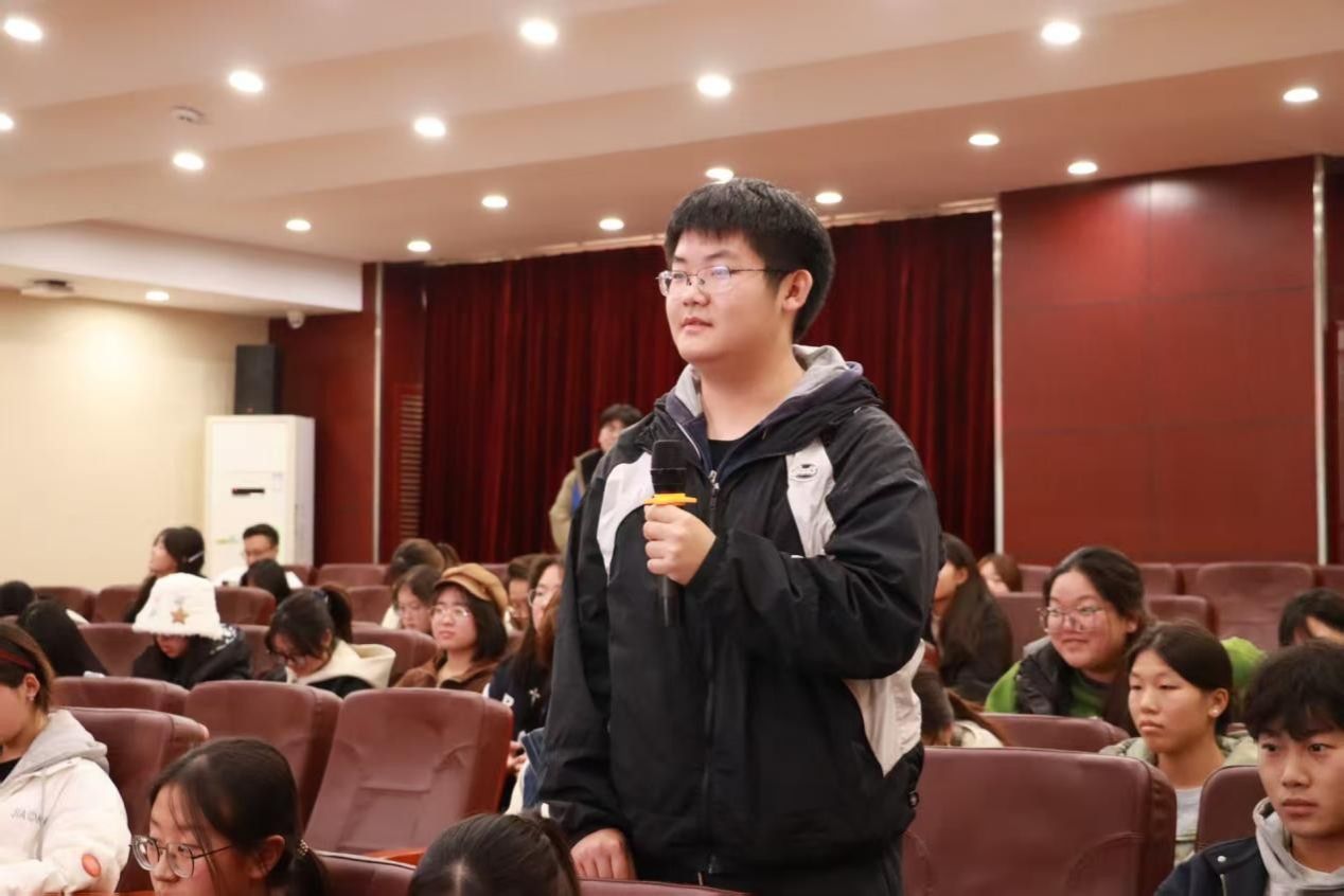 王晓会则从业务实践出发,结合大学阶段的成长经历,围绕学业、生活、社交、职业规划与心态五个方面提出建议。他表示,大学阶段仍应以学业为核心,同时拓展外语、计算机等复合技能,并注重培养独立生活能力与社会交往能力。鼓励同学们要尽早明确职业发展方向,并保持“内心有光、待人以诚、学有所乐、生命炽热、未来可期”的积极心态,以实现持续成长与全面发展。