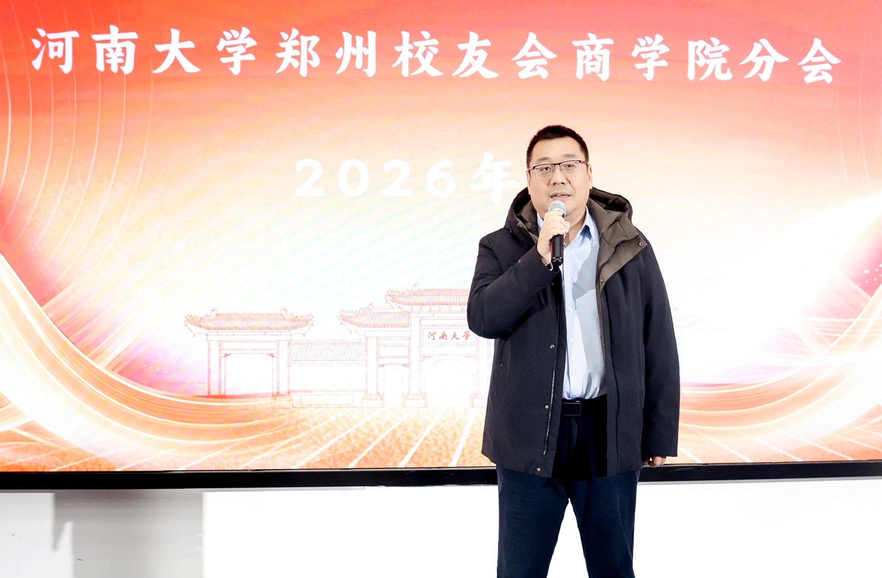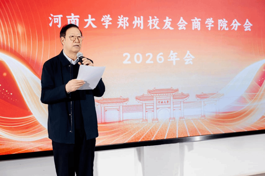 2026年1月18日下午,河南大学郑州校友会商学院分会2026年会在郑州校区友兰学堂南楼B座104报告厅盛大举行。本次年会以“同窗聚首忆芳华,商道同行话未来”为主题,众多校友重返母校,畅叙情谊,共商发展大计。河南大学副校长、校友与教育发展基金工作部部长、校友总会会长乔梁,河南大学郑州校友会商学院分会会长程传兴,河南大学商学院党委书记左辞波等学院领导老师出席活动,河南大学校友代表、深圳东方港湾投资管理股份有限公司董事长但斌受邀担任主讲嘉宾,近200名商学院校友欢聚一堂,共襄盛举。