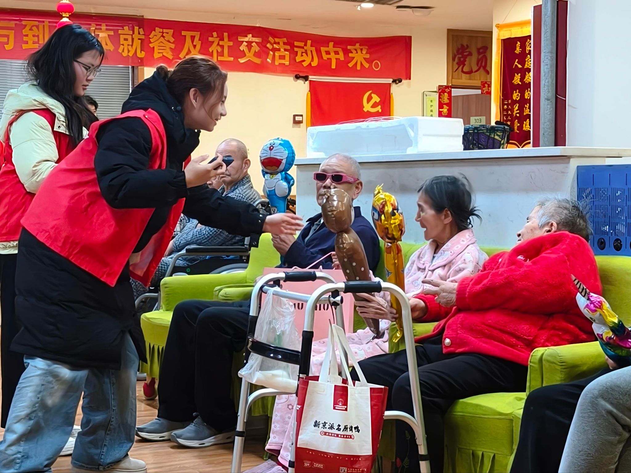 趣味十足的魔术表演更是将氛围推向高潮,扑克牌串烧、硬币消失术等精彩绝技让长者们看得津津有味,不时发出阵阵笑声与掌声。志愿者们以艺术为桥,不仅为长者们带去了欢声笑语,更用青春活力驱散了孤单,让温暖在彼此心间悄然传递。