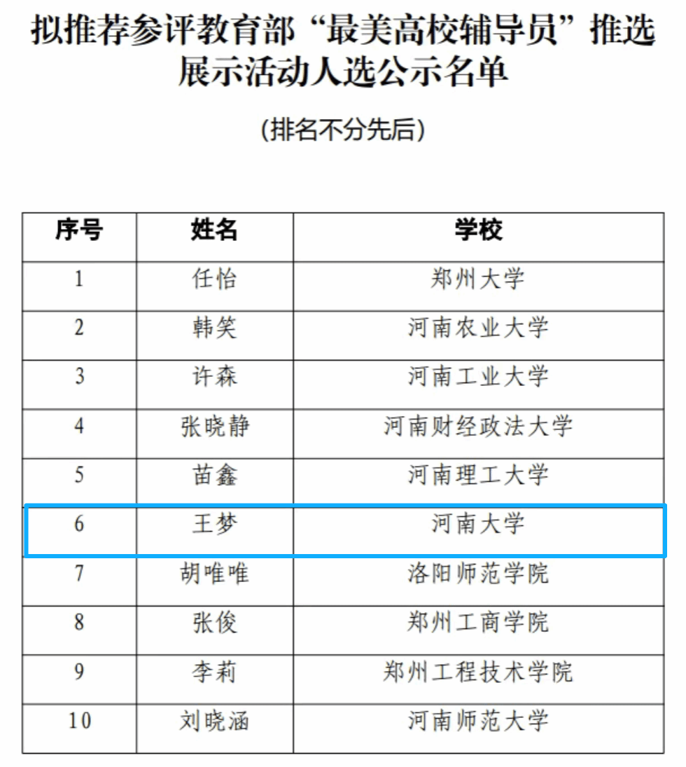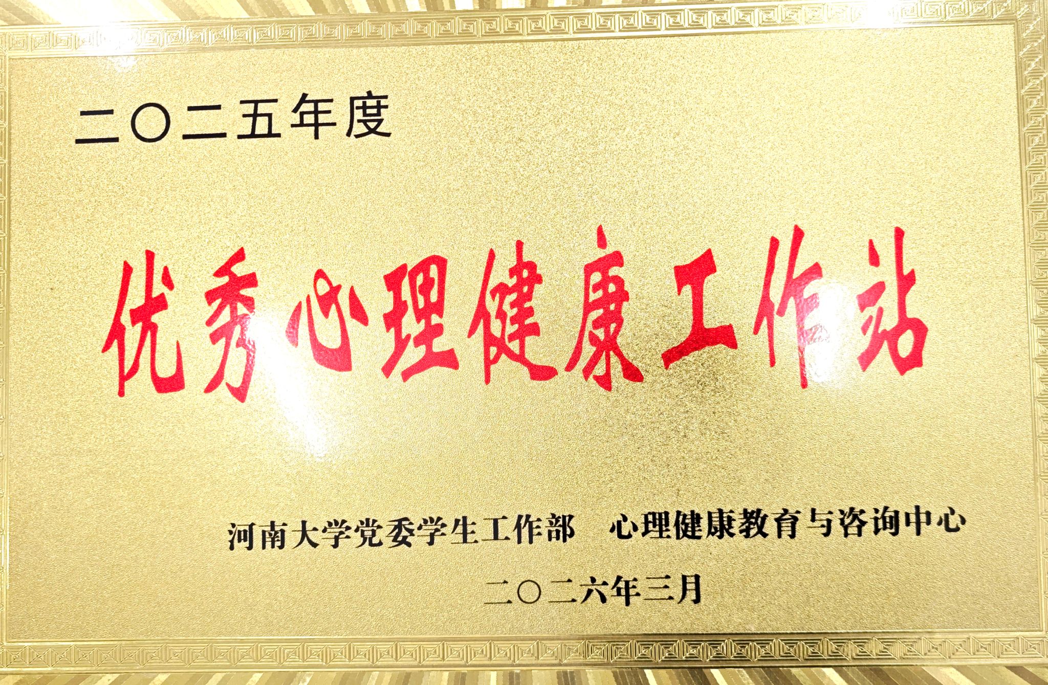 近日,河南大学2026年学生工作会议在金明校区行政楼249会议室召开。我院资助工作站获评2025年度“资助育人先进集体”,心理工作站获评学校2025年度“优秀心理工作站”,我院辅导员王梦荣获河南大学首届“我最喜爱的辅导员”荣誉称号,并被学校推送至教育部参与“最美高校辅导员”评选。