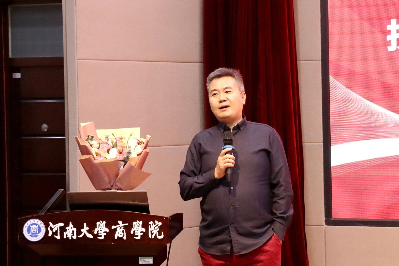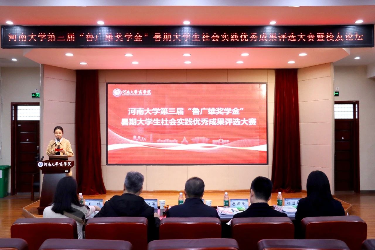 11月27日下午,河南大学第三届“鲁广雄奖学金”暑期大学生社会实践优秀成果评选暨第十五期校友论坛在商学院二楼学术报告厅举办。商学院副院长李志强出席活动,“鲁广雄奖学金”设立发起人、商学院2000级校友杜江涛及其夫人、护理学院2002级校友王瑞,商学院2000级校友岳希刚应邀返校担任企业评委。商学院现代物流研究院副院长、电子商务系教师杨洁辉,国内合作办公室主任韩焕法,团委负责人聂大开参加活动并担任校内评委。比赛由2025级辅导员许欣怡主持。