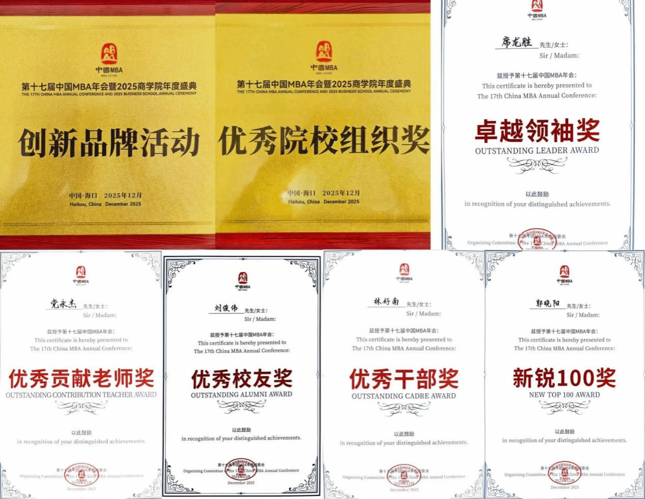 我院依托深厚的MBA办学积淀与亮眼的人才培养实绩,一举斩获“创新品牌活动”、“优秀院校组织奖”。同时,席龙胜荣获“卓越领袖奖”,党永杰获评“优秀贡献老师奖”,刘俊伟获得“优秀校友奖”,林好南、郭晓阳分获“优秀干部奖”、“新锐100奖”。此次多项荣誉的取得,集中体现了我院在MBA教育领域的深耕成果与综合实力,也是我院持续推进“共建、共享、共成长”教育理念的生动实践,为中部地区MBA教育的协同发展提供了积极示范。