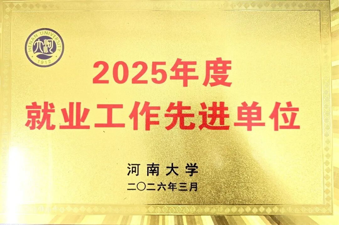 4月10日下午,河南大学2026年度就业创业工作会在金明校区锥形报告厅召开。会议全面总结2025年度全校就业创业工作成效,表彰先进单位与个人,部署2026年度重点任务。我院凭借扎实工作与突出表现,荣获“2025年度就业工作先进单位”和“2025年度创新创业工作先进单位”双项集体荣誉;教师杨洁辉获评“2025年度创新创业工作先进个人代表”,聂大开获评“就业工作先进个人”,王路阳获评“创新创业工作先进个人”荣誉称号。