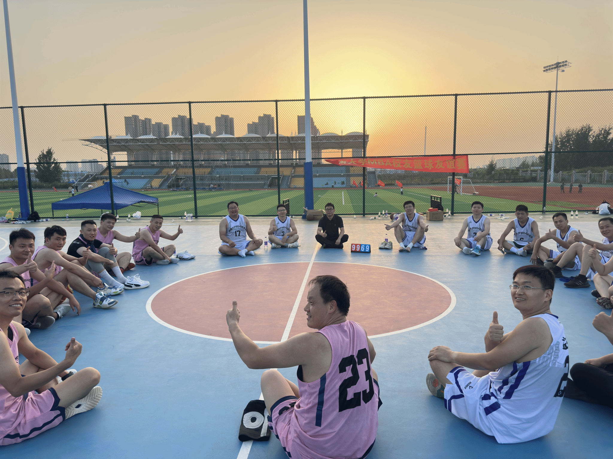 颁奖环节结束后,夕阳渐渐西沉,为龙子湖校区镀上了一层温暖的金边,粼粼湖光与绚烂晚霞交相辉映,营造出温馨的氛围。所有参赛队员与活动组织人员围坐在篮球场中心场地,卸下赛场的紧张与疲惫,开启了轻松愉快的交流。在交流过程中,惊喜不断 —— 有人意外找到了来自同一城市的老乡,乡音乡情瞬间拉近了彼此的距离;有人发现与身边的校友曾在同一家企业工作,共同的职场经历让两人有了更多共同话题;更有校友在交流中发现双方业务存在契合点,当场就开启了关于合作可能性的初步探讨。这场以球会友的盛会,不仅留下了赛场上的热血瞬间,更种下了校友情谊的种子。未来,河南大学 MBA 校友会将继续以多样的活动为载体,连接校友、服务校友,让校友情谊在时光中沉淀,让合作之花在交流中绽放,共同书写河南大学 MBA 校友群体的精彩篇章。