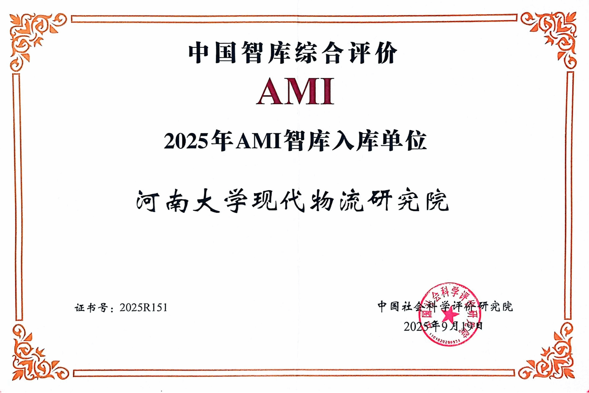 河南大学现代物流研究院成功入选2025年中国智库 综合评价(AMI)入库名单